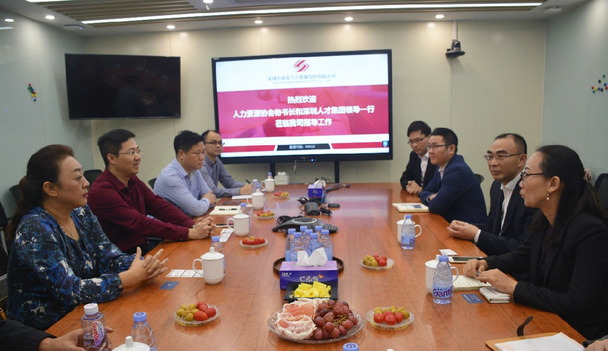 11月19日上午9點(diǎn)半,深圳市人力資源服務(wù)協(xié)會(huì )秘書(shū)長(cháng)陳楊生與深圳市人才集團總經(jīng)理詹星洲、千里馬國際獵頭公司副總經(jīng)理徐文等一行蒞臨南深股份,集團董事長(cháng)劉文華、副總經(jīng)理羅莉等公司相關(guān)領(lǐng)導進(jìn)行了熱情接待,并且雙方就全方位的人才服務(wù)相關(guān)事宜進(jìn)行了詳細的座談和溝通。