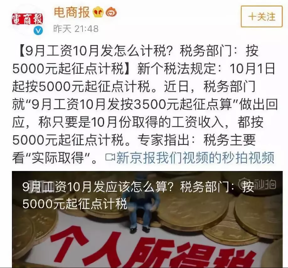 微博上#沒(méi)按5000元起可征點(diǎn)計稅投訴#悄悄爬上了熱搜位。5000元起征點(diǎn)10月1日正式實(shí)施,但是有些公司竟然還以3500元扣稅?