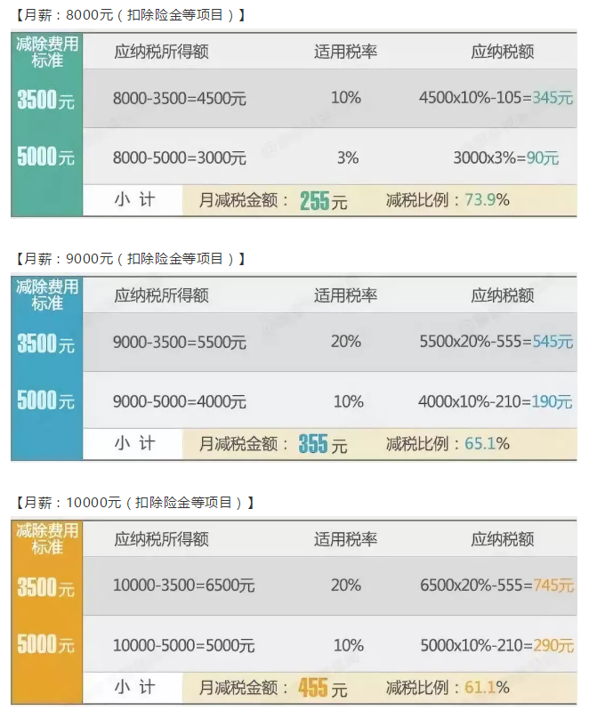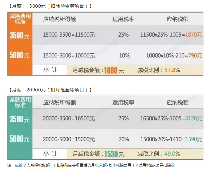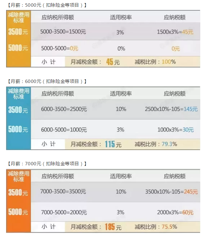 一、根據修改后的個(gè)人所得稅法和有關(guān)規定,納稅人在今年10月1日(含)后實(shí)際取得的工資薪金所得,應當適用5000元/月的費用減除標準。對于符合上述情形的,扣繳義務(wù)人要嚴格按照5000元/月費用減除標準代扣代繳稅款,確保納稅人不打折扣地享受稅改紅利。