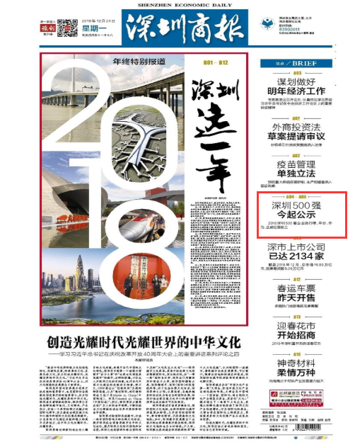 《2018深圳500強企業(yè)發(fā)展報告》入選名單