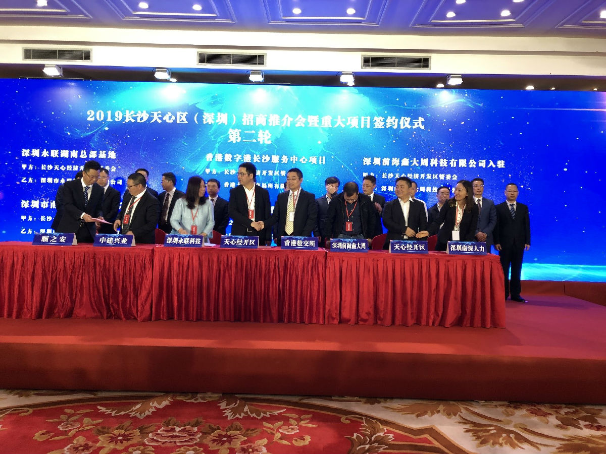 2019年4月15日上午,主題為“鵬城萬(wàn)里,心聯(lián)天地”的長(cháng)沙天心區(深圳)招商推介會(huì )暨重大項目簽約儀式在深圳五洲賓館隆重舉行,南深股份在重大項目簽約儀式中,正式與長(cháng)沙天心經(jīng)濟開(kāi)發(fā)區管委會(huì )簽訂項目入駐協(xié)議。