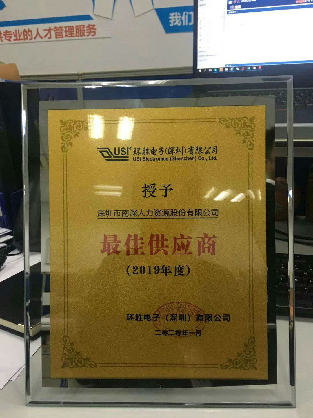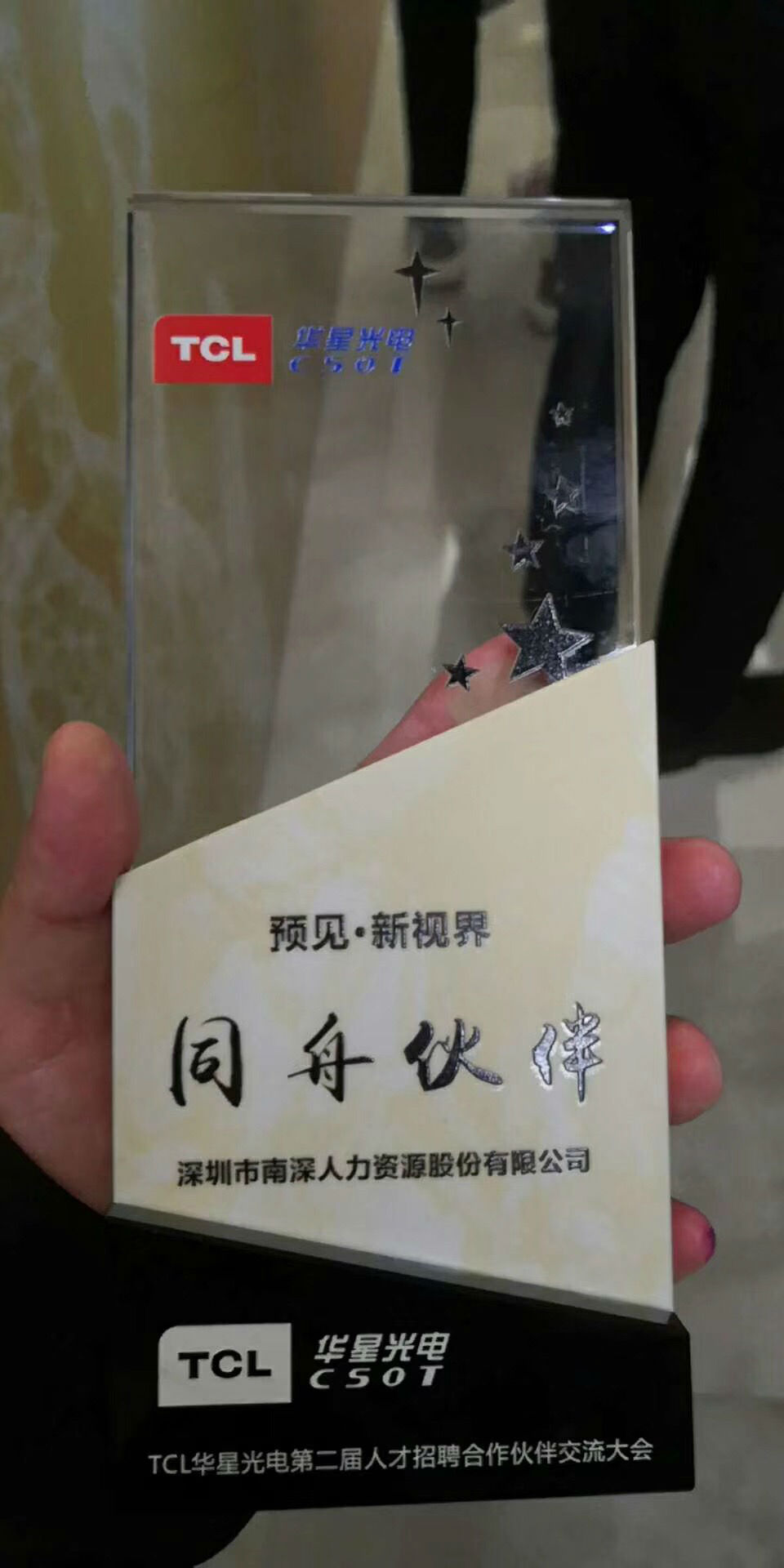由南深人力合作企業(yè)“環(huán)勝電子(深圳)有限公司”授予的“最佳供應商”,以及“深圳市華星光電技術(shù)有限公司”授予的“同舟伙伴”兩個(gè)獎項。