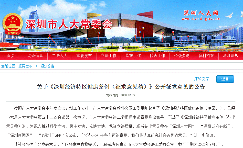 深圳人大官網(wǎng)一則名為《深圳經(jīng)濟特區健康條例(征求意見(jiàn)稿)》的通知公布,對規范職工健康管理提出很多明確要求,強制休假就是其中的重要一條。