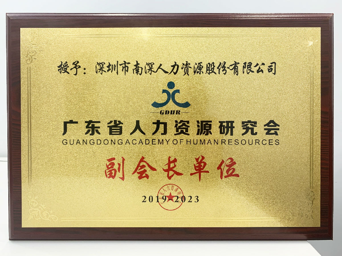 圖:廣東省人力資源研究會(huì )副會(huì )長(cháng)單位牌匾
