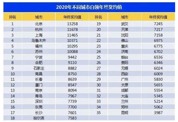城市白領(lǐng)年終獎數值與當地平均薪資水平掛鉤,因此發(fā)達地區也會(huì )相應發(fā)放更高的年終獎。