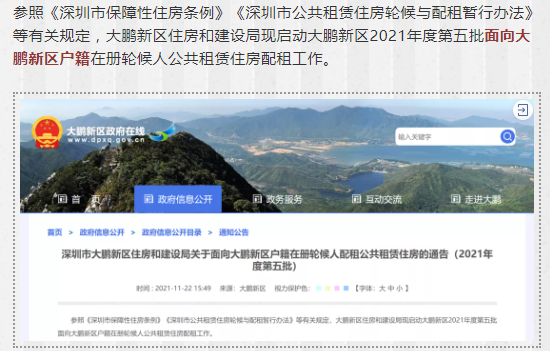 2021年11月23日及之后戶(hù)籍從其他區遷入大鵬新區的在冊輪候人,不接受此次認租申請。