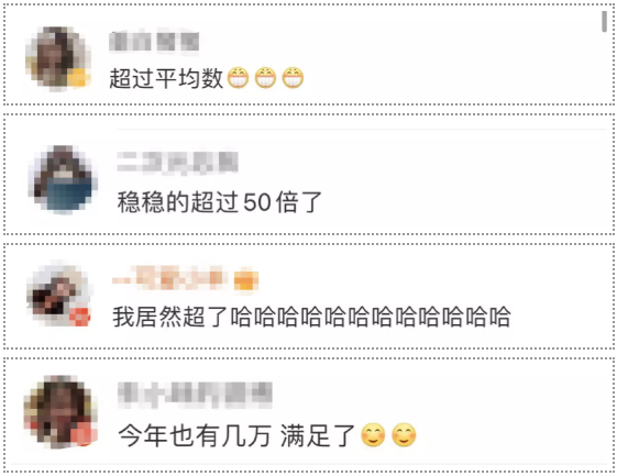 不少網(wǎng)友表示,這次自己終于達到平均數了